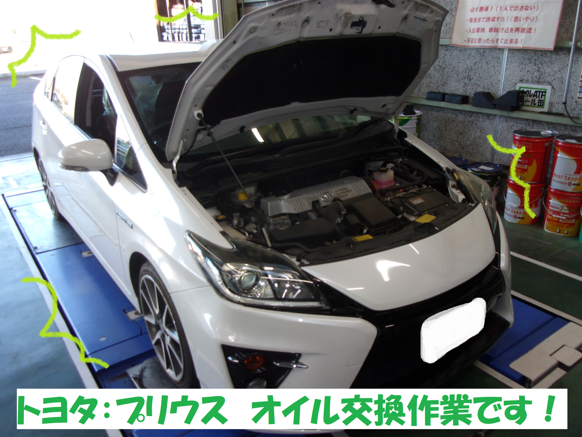 プリウスのオイル交換 橿原市のカーコンビニ倶楽部 株式会社瀬川オート 自動車のキズ ヘコミ修理